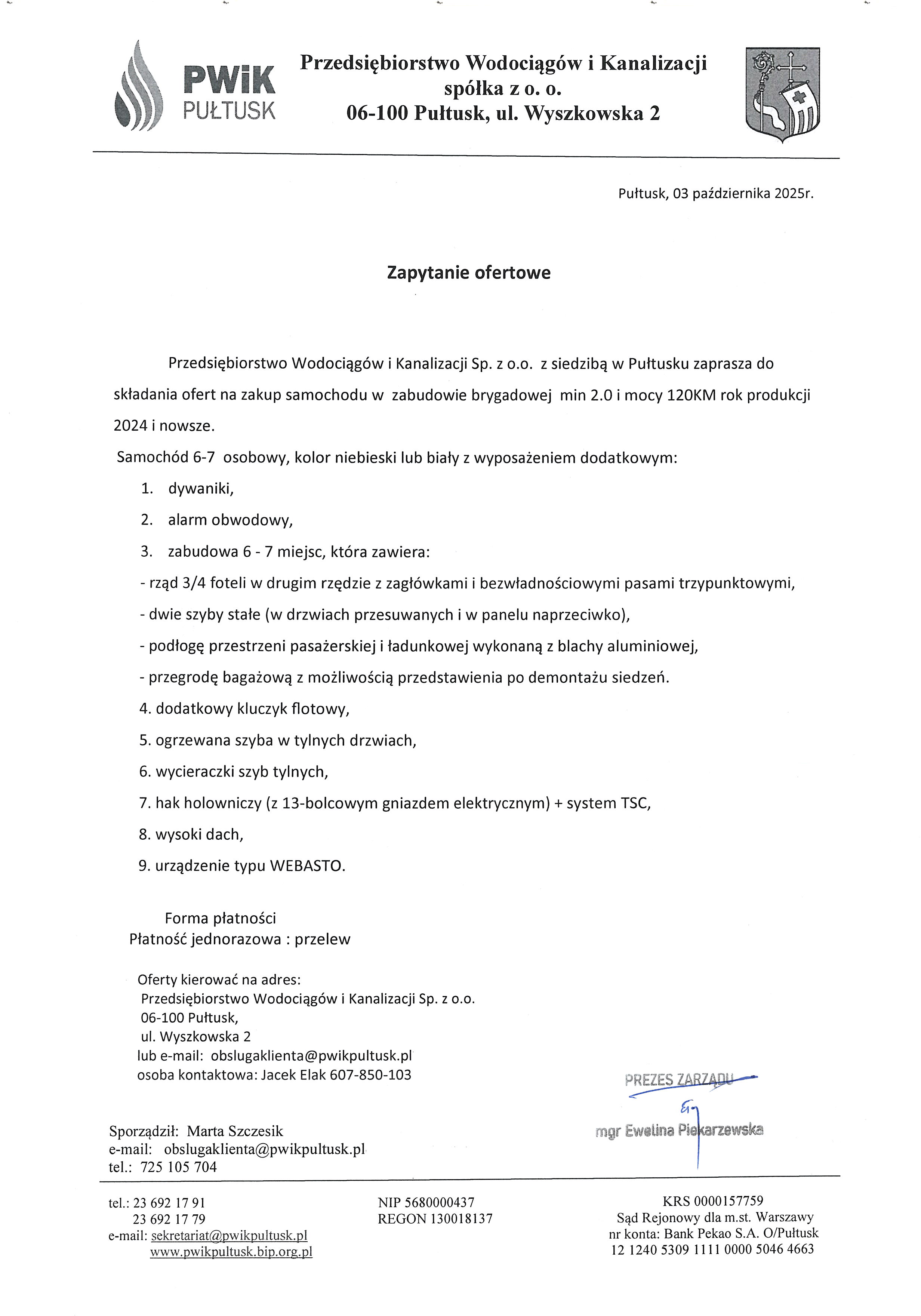 lub na e-mail: obslugaklienta@pwikpultusk.pl